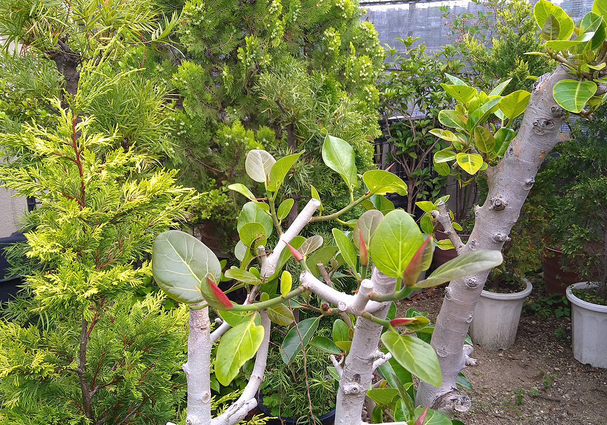 春にバッサリ切り戻した植物たちも順調に芽を伸ばしています。中途半端に葉を残すよりも、幹だけの状態まで切り戻した方が仕上がりがきれいになります。