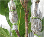 はがした部分を湿らせた水ゴケで巻き、乾燥を防ぐためビニールで包む