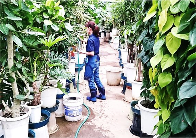 うらかわ園芸で取り扱っている観葉植物。その葉には種類ごとにさまざまな色や形の特徴をもっています。近づいてよく見てみると、葉の形、色彩、厚さ、斑(ふ)の入り方などの模様、葉脈(ようみゃく)など、それぞれの個性を観察できます。
